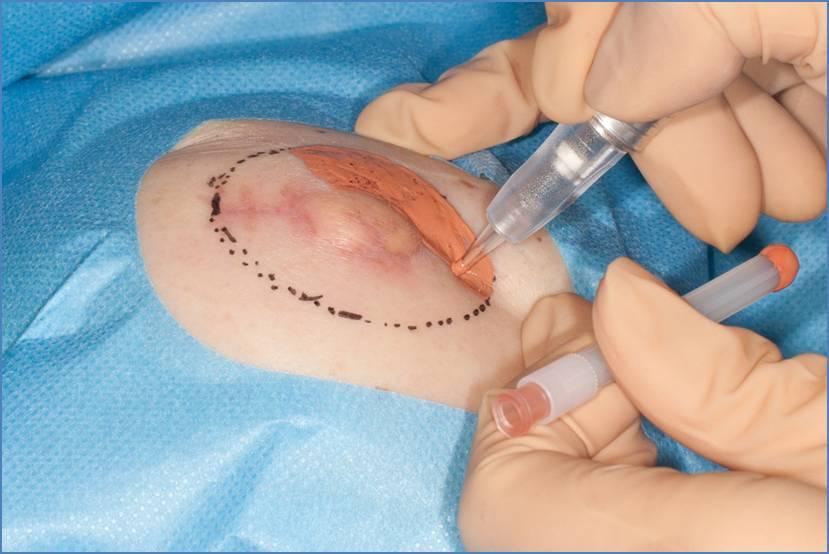 De tepelhof wordt nagebootst door tatoeage van de tepelhofregio. Deze tatoeage vindt plaats ongeveer één tot drie maanden na de reconstructie van de tepel.Tatoeage moet vaak meerdere keren na enige jaren vanwege het vervagen van het pigment. De ziektekostenverzekeraar vergoedt maar eenmalig een tatoeage.Beide ingrepen kunnen onder plaatselijke verdoving plaatsvinden. Een opname is niet noodzakelijk.