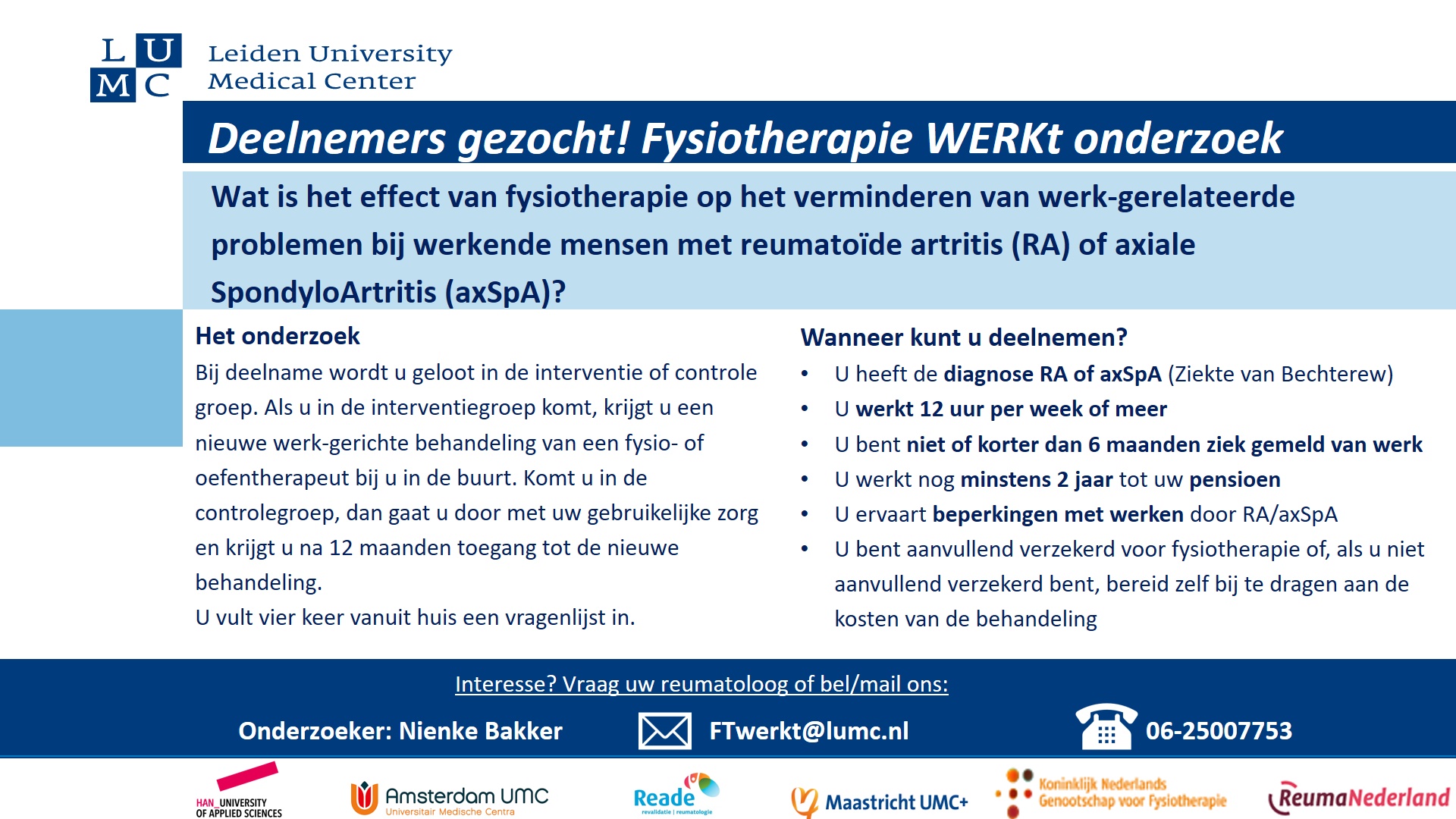 We gaan na wat er bij u aan de hand is en wat de oorzaken zijn. Vervolgens gaat de reumatoloog kijken welke mogelijkheden en behandelingen er zijn. Misschien zijn er nog vervolgonderzoeken nodig om meer duidelijkheid te krijgen. Uw arts bespreekt de uitslagen van onderzoeken met u tijdens het eerstvolgende polibezoek, tenzij hij/zij aangeeft dat dit anders is.