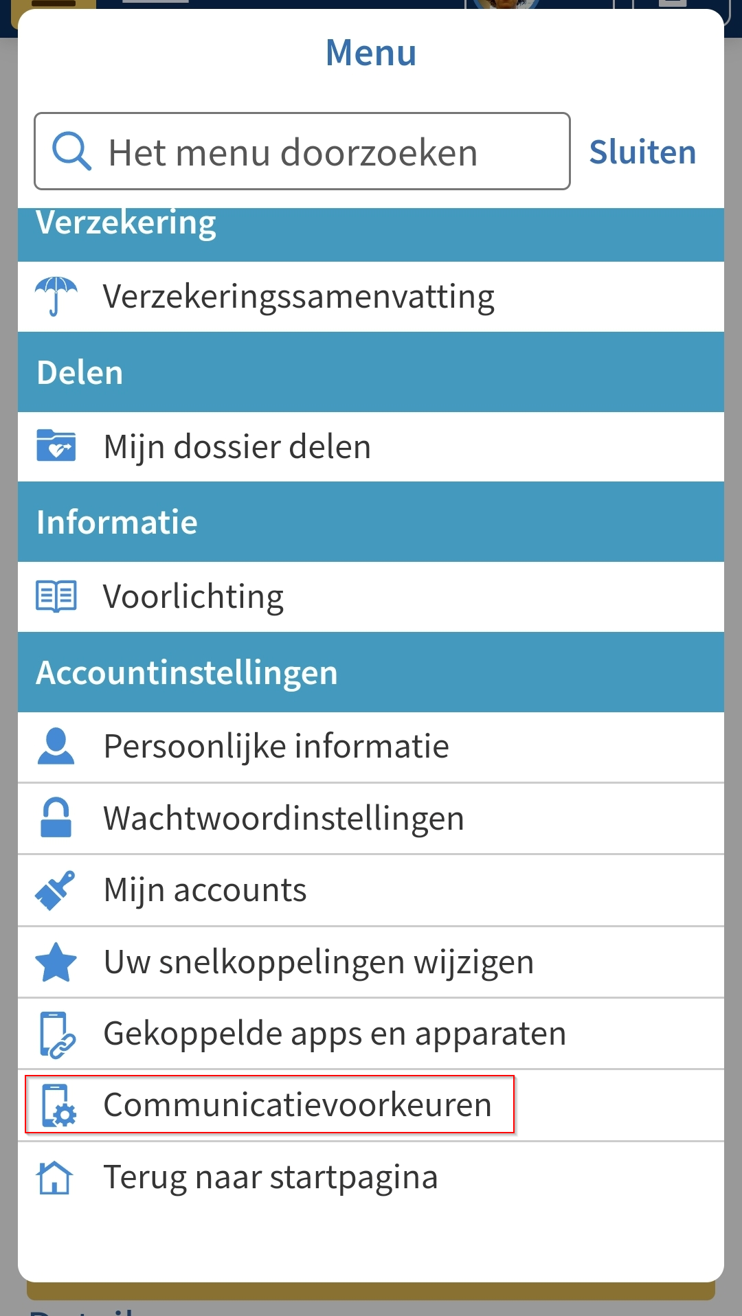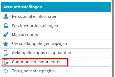 1. Ga via het hoofdmenu naar communicatievoorkeuren: