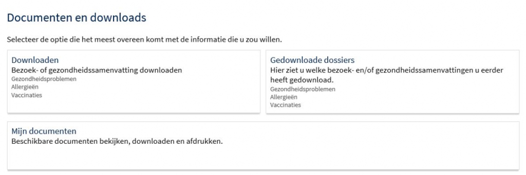 Bij “Mijn documenten” wordt momenteel alleen de wilsverklaring getoond (indien aanwezig in uw dossier).